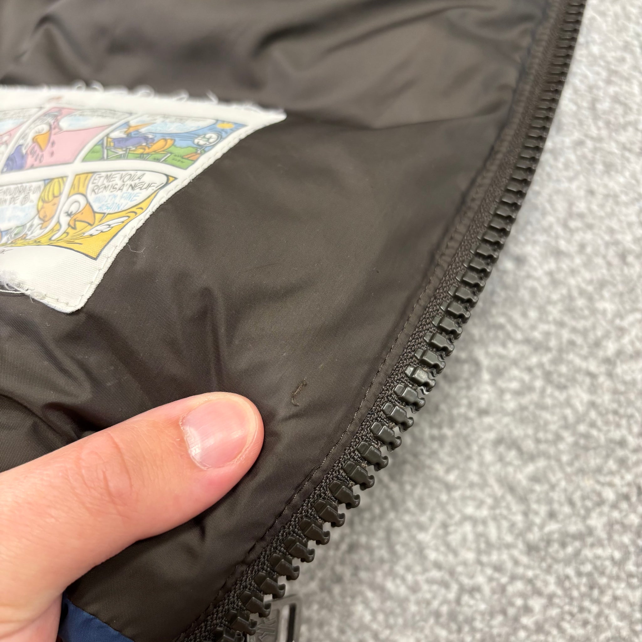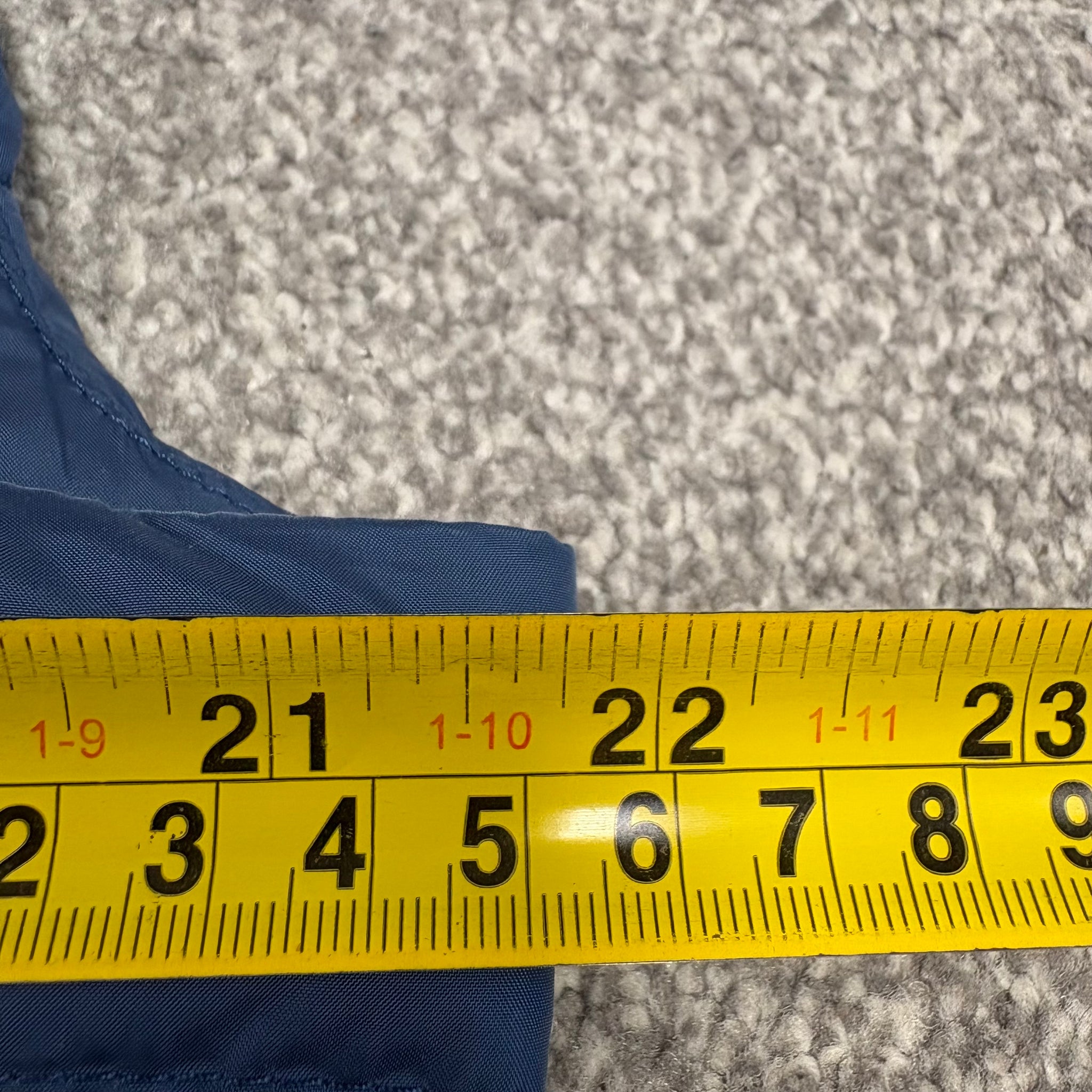 Great condition, general wear to the material as shown (some slight scuffs/pulls). Small nick on the inside lining.