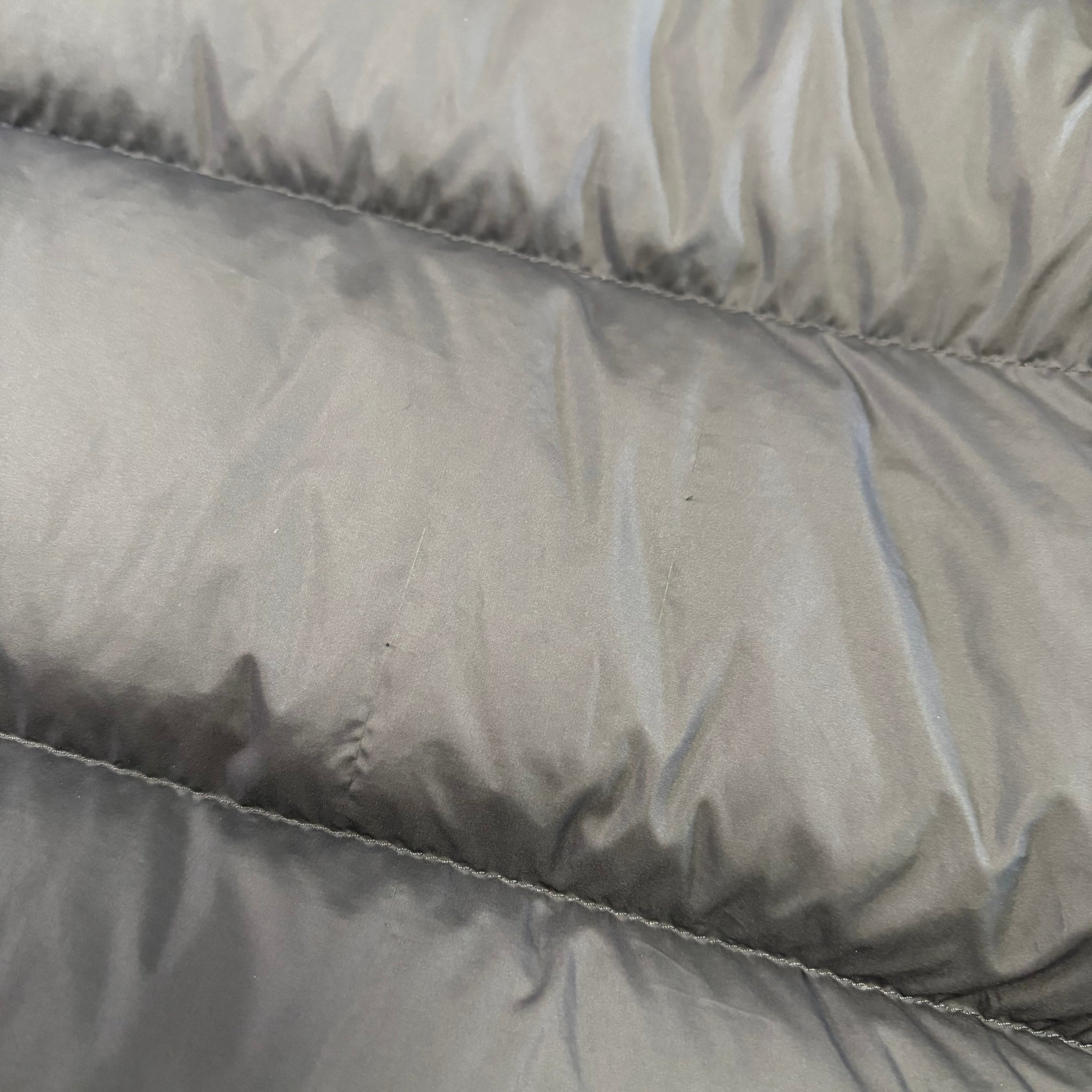 Great condition, one small repair on the bottom panel. A few light marks and some slight pulls on the back. Missing the hood.